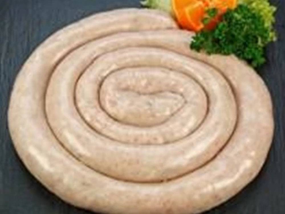 Pølsen laves i ét langt stykke og skæres først ud før serveringen.